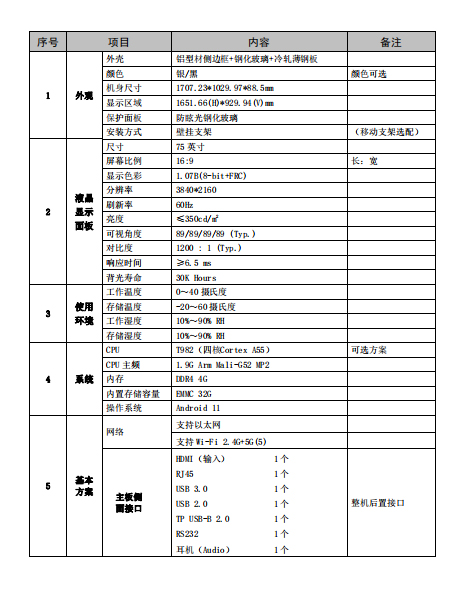 2. 智能交互平板均采用超高清真 4K 画质,显示更加清晰,画面刷新率为 60~120Hz。